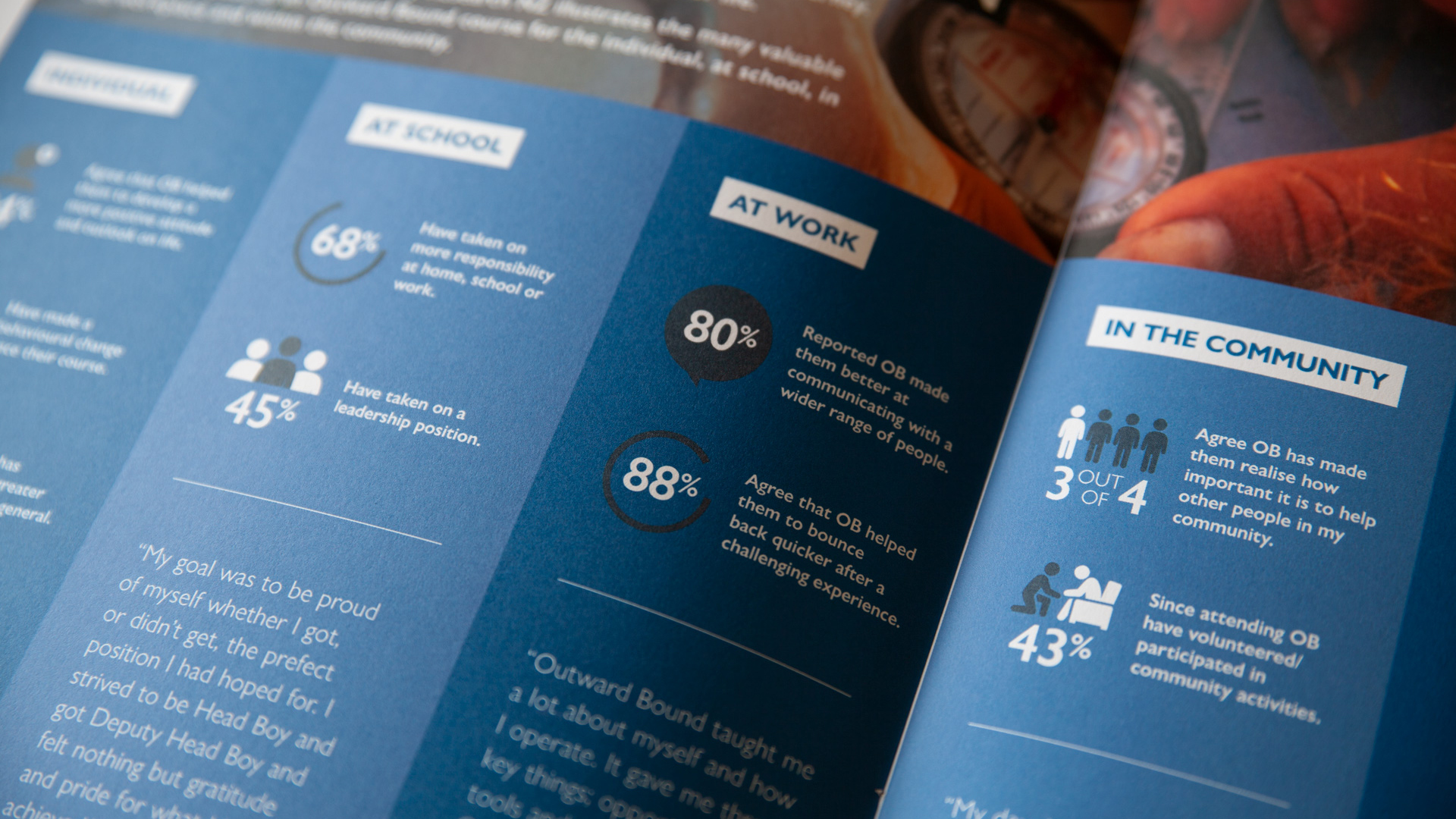 We created a high impact brochure that spoke to Outward Bound’s audiences, that told their story succinctly. Any enquiries through Outward Bound could now be provided with an effective document that highlighted the key elements of the Outward Bound organisation. The Head Office exterior was reinvigorated, refreshed to reflect their brand values, their culture and their story. Allowing it to stand out in a busy area and build awareness of the brand.